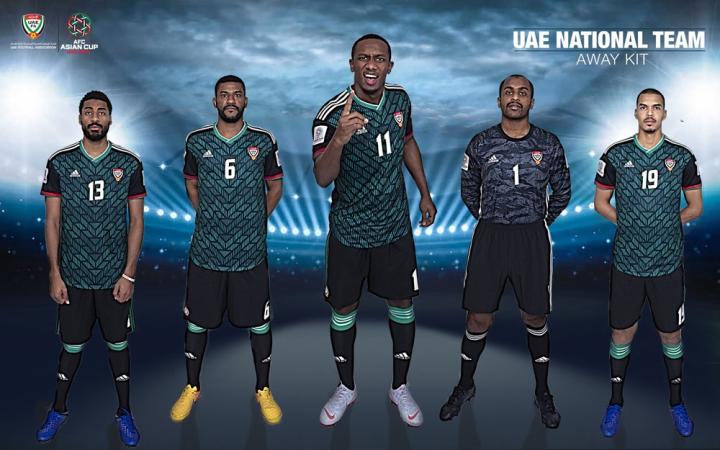 阿联酋国家队全新客场球衣则以黑、绿两色为基调,并加入白色和红色装饰,一同组成阿联酋国旗的形象。以黑色为基调的球衣上加入绿色几何花纹,以“V”字形显现的几何花纹寓意身为东道主的阿联酋国家队将在本届亚洲杯上取得好成绩。同时,这一几何花纹样式与西班牙国家队2018世界杯客场球衣完全一致。