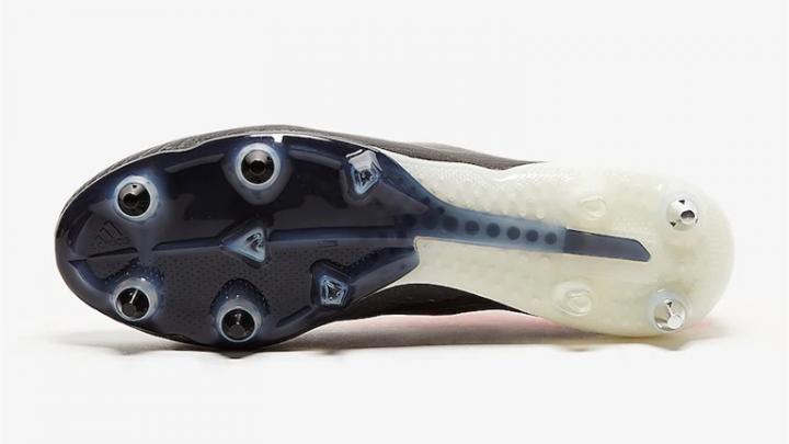 高端款一般情况下会尽可能的保留旗舰级所采用的材料和科技,仅仅只针对球鞋实战来修改调整,满足球员的需求。在阿迪达斯的足球鞋产品上,旗舰级和高端级的差异会直观的体现在鞋带系统这个环节上。但是因为无鞋带和有鞋带鞋面结构的不同,一些相关联的设计也会调整,比如内部锁定、鞋面部分区域的覆膜等等。