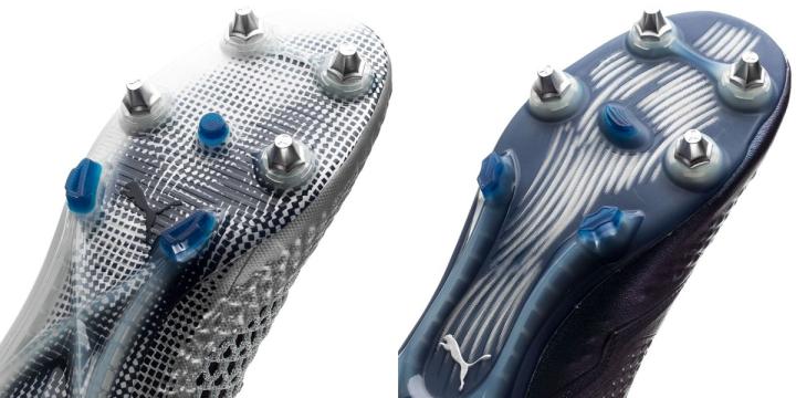 PUMA两大系列足球鞋搭配的TT碎钉大底各不相同,FUTURE系列的鞋钉呈圆形,更强调灵活性,而ONE系列的碎钉呈三角形,更强调抓地力、气动性能。