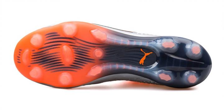 日版PUMA所搭配的HG大底鞋钉数量比FG大底更多,稳定性更好,但是鞋钉的长度未见得缩短多少,看上去场地兼容性只能属于中等,更适合日本特有的沙土场地或是人造草球场吧。