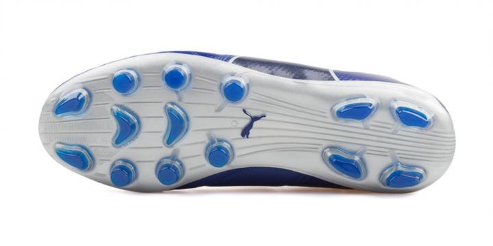 PUMA战靴的FG大底性能出色,轻量又具有韧性,鞋钉长度偏长,只能在条件很好的人造草或者天然草上使用。