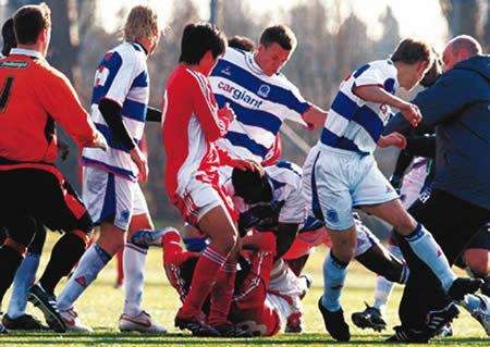 没听过对吧?看完下面这段他们和中国队的故事你就有印象了!还记得2007年,85届国奥在英国与切尔西预备队以及女王公园巡游者预备队的打架事件吗?当时,菲尔-年轻丈夫就效力于切尔西,而且在那场比赛中首发出场。