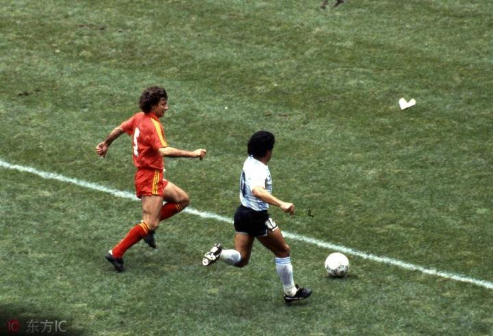 (图)在球场上驰骋的马拉多纳十分享受接到传球的过程
