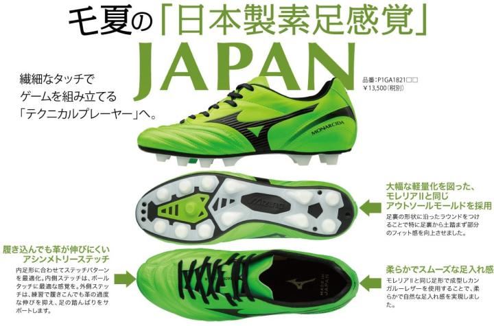 最后我们再介绍一下的Monarcida的各级别战靴。旗舰级分别有Monracida 2 Neo JAPAN与Monarcida 2 JAPAN,日本产、袋鼠皮材质、高性能大底、脚型兼容性强,售价也不比其他系列逊色。