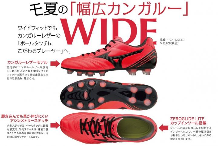 高端产品有Moncraida 2 Wide足球鞋,采用了加宽3E鞋楦,更受宽脚球员欢迎,鞋头主要触球部位采用高品质防水袋鼠皮打造,拥有舒适且出色的穿着和实战表现。
