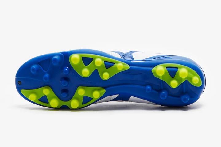 接下来我们要介绍美津浓足球鞋的AG和AS大底,这两款鞋底虽然没有在旗舰级和高端级别上使用,但却因为在中国国内拥有极高的场地适应性而走红。美津浓Morelia Neo KL和Rebula V2足球鞋采用的AG大底是专门针对人造草场地设计,偏短的鞋钉就算面对地毯草依旧可以使用,这一点实战过这款AG大底的球迷最有发言权。