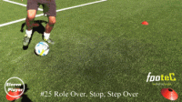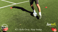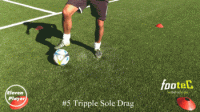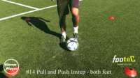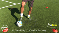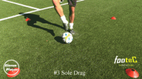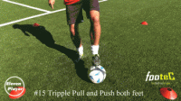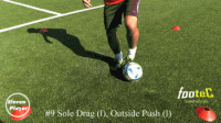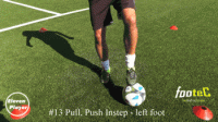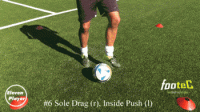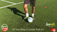 然后在使用左脚脚底将球横向拉回到起始位置。