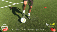 然后再用左脚脚内侧将球推回到原来的位置。