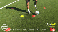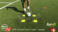 然后交替使用双脚脚底向不动的方向围绕着四个标志碟拉球,持续完成横向纵向的8字线路。