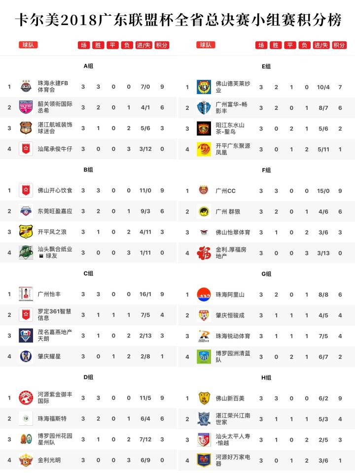广州和佛山各4支球队参加全省总决赛、除了死亡F组的佛山怡翠不幸和两支广州球队同组未能出线外,其余7队均轻松出线。当然,受到城市参赛名额所限,大胆设想,如果参赛的球队是广州、佛山赛区的5-8名,相信也同样是小组出线的大热门。