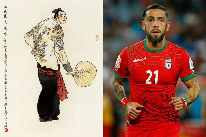 德贾加,伊朗著名球星。在亚洲足坛,拥有漂亮纹身的球员并不多,德贾加可以说是比较突出的一个。他的纹身主要有三处:左臂纹着柏林,右臂纹着其波斯文姓氏及出生地德黑兰,颈部则纹了一句格言“永远不要忘记你来自哪里”。这些纹身的内容描绘了德贾加的成长环境。他出生在伊朗,成长于德国,拥有伊朗和德国双重国籍。他是柏林赫塔队优秀的青训产品。在柏林踢出名堂后,德贾加转会去了沃尔夫斯堡。2008/2009赛季,他帮助球队问鼎德甲冠军。2012年夏天,德贾加转投英超的富勒姆队。三个平淡的赛季后,他加盟了卡塔尔联赛的多哈阿拉伯人队。2017年,德贾加曾短暂返回沃尔夫斯堡,之后又辗转英冠球队诺丁汉森林。2018年,他加盟伊朗的大不里士拖拉机队,32岁的德贾加总算踢上了“本国”联赛。国家队方面,德贾加年轻时一直是“德国球员”,他效力过德国的各级青年队,并且是2009年欧青赛的冠军队成员。不过由于德国足球人才济济,德贾加始终没能等来为成年国家队效力的机会,于是他在2012年穿上了伊朗队的战袍。此后,他为伊朗队征战过一届亚洲杯和两届世界杯。截止到2018年,德贾加共为伊朗队出场51次,打进9球。