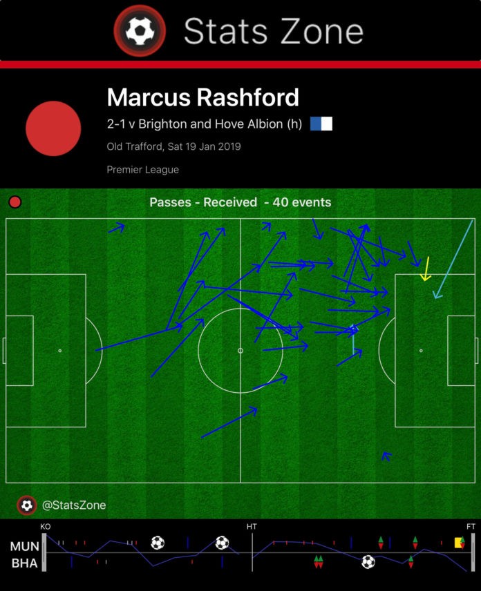 自从穆里尼奥离开后,拉什福德看上去更棒了,作为中场,他在7场比赛中打进了5粒进球,他的速度对后卫可以构成很大威胁,经常会利用速度攻击中后卫身后的空间,然而,对阵布莱顿的比赛,他又表现出了不同的风格。