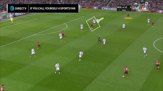 林加德在两条防线间找到了很大的空间,向右侧的肋部移动,准备利用布莱顿的防守阵型的结合部。布莱顿则以4-5-1阵型组织防线,但左边锋洛卡迪亚经常留在更高的位置,为布莱顿的后防提供一个进攻出口,同时给予前场的单前锋穆雷提供一些支持。