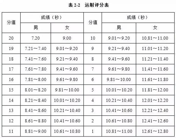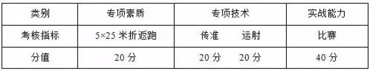 ② 评分标准:以球从起点线踢出后,从空中落到地面的第一接触点为准。考生每将球传入目标区域的半圆内(含第一落点落在圆周线上),或五人制球门(含球击中球门横梁或立柱弹出)即得4分。每人须完成5次传准,满分20分。