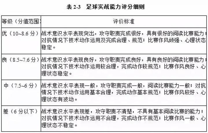 2. 评分标准:考评员参照实战能力评分细则(表2-3),独立对考生的技术能力、战术能力、心理素质以及比赛作风等方面进行综合评定。采用10分制评分,分数至多可到小数点后1位。