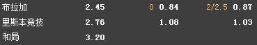 本场比赛给出平手布拉加超低奖金,两队在今季联赛首回合交锋布拉加主场让平/半偏高奖金最终1比0取胜,本场比赛指数下调,考虑到布拉加目前在联赛的成绩比里斯本竞技还多2分,而且里斯本竞技的客场战斗力较差,布拉加不让球已经是低看。