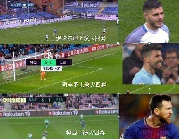这个进球和之前的梅西进球如出一辙,反映出阿根廷球星充满灵性的脚法。阿根廷球星的进球能力确实很强,上赛季,梅西、阿圭罗、伊卡尔迪都在各自联赛上演过大四喜。