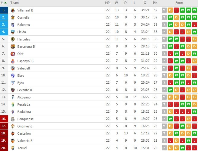 赛况:第4分钟,对手左路传中,后点包抄队员将球打进,巴萨B队在主场落后。第10分钟,普驰一脚精妙的直塞找到了后插上的卡莱斯佩雷斯,佩雷斯进入禁区之后稍作调整破门,帮助球队扳平比分。第52分钟,佩雷斯右边路突破后杀入禁区推射远角帮助球队反超比分。第64分钟,佩雷斯接到普驰的分球进入禁区后面对后卫推射远角完成帽子戏法。第68分钟,普驰机警断球后推进到禁区射门被封堵,科拉多左脚暴力抽射右下角得手。第83分钟,替补出场的新援Vilarrasa在禁区前沿和佩雷斯做了撞墙配合后扣过后卫突入禁区单刀破门完成在B队的处子球。比分最终定格在5-1(集锦视频可以在巴萨官网或者微博@巴萨推特 那里观看)