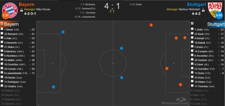 第一次前场抢断来了,第一次前场拦截也来了。再然后就是根特纳反击里一脚长传,阿纳斯塔西奥斯-每逢拜仁就来劲-多尼斯那一脚无解的搓射。