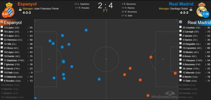 一会在左肋连续过人间接制造了皇马的第四个进球,一会在右肋连续过人分给空位前插的卡瓦哈尔。如果莫德里奇在57分钟的那脚射门打进,本泽马甚至可以完成一次回撤护球策应→高速前插接应→弧顶直塞助攻的大满贯。