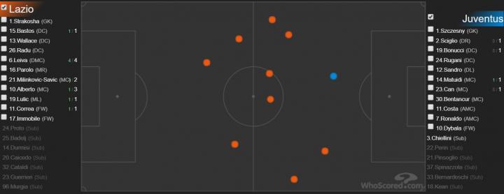 不是说他不好,但让他来代替皮亚尼奇实在是有点强人所难。在拉齐奥几乎疯狂的高位逼抢下,以他为首的尤文中场不断出现传球和停球失误,给了对手太多就地反击的机会。前20分钟,拉齐奥在抢断次数上有着9-1的巨大优势,这简直就是一个让尤文球迷绝望的对比。
