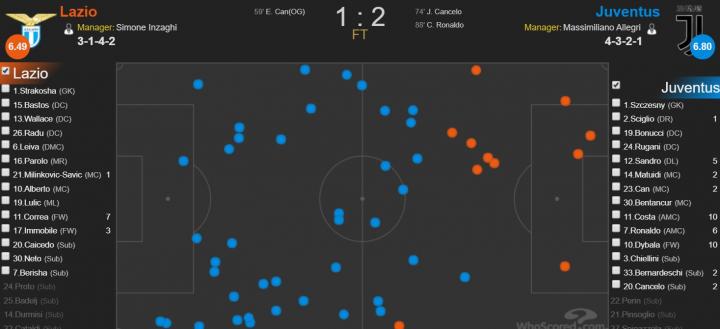僵局打破之后,拉齐奥乘胜追击又燃起了一波疯抢的斗志,尤文却还是解决不了传球失误过多的问题。要不是这赛季的因莫比莱不是上赛季的意甲金靴,这比赛很可能在60分钟就失去了悬念。