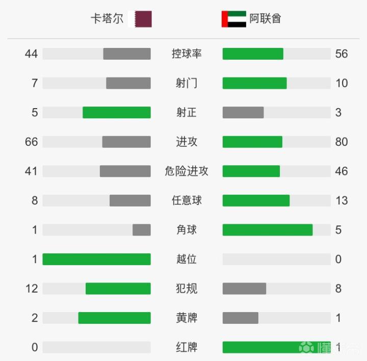 第22分钟,阿联酋门将失误,胡希破门,卡塔尔1-0阿联酋。