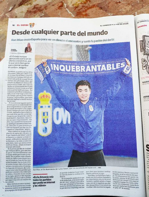 我是缪剑,一位来自深圳的普通球迷,也是一名在西班牙留学的研究生,目前就读于穆尔西亚的武康大学,读体育管理。当然我还有一个大家不为人知的身份——西乙皇家奥维耶多最早的中国股东之一。