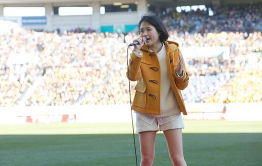 (图)由于国立竞技场整修,2015年的第93届全国高校足球选手权大会决赛在琦玉2002世界杯体育场举行,当红偶像大原樱子现场演唱了她为本届大会创作的歌曲《瞳》