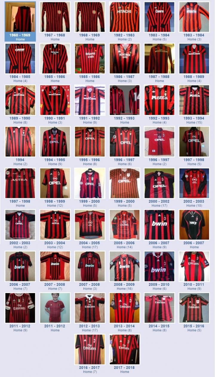 因身穿红黑相间的球衣,所以AC米兰队被昵称为“Rossoneri”(意大利语,意为“红黑军团”)。这件球衣将传统的红黑剑条设计成不同的色调和宽度,两种不同色调的红色条纹带来更为丰富的视觉感受。AC米兰与阿迪达斯的合作开始于1998-1999赛季,2017-2018赛季结束后AC米兰转投彪马旗下。