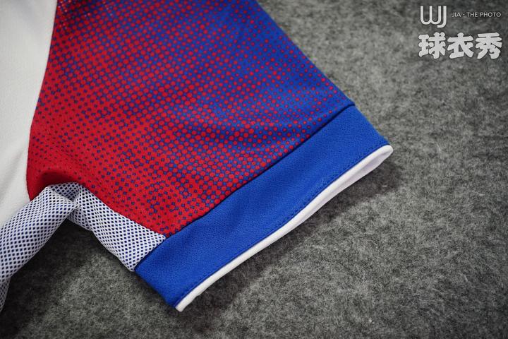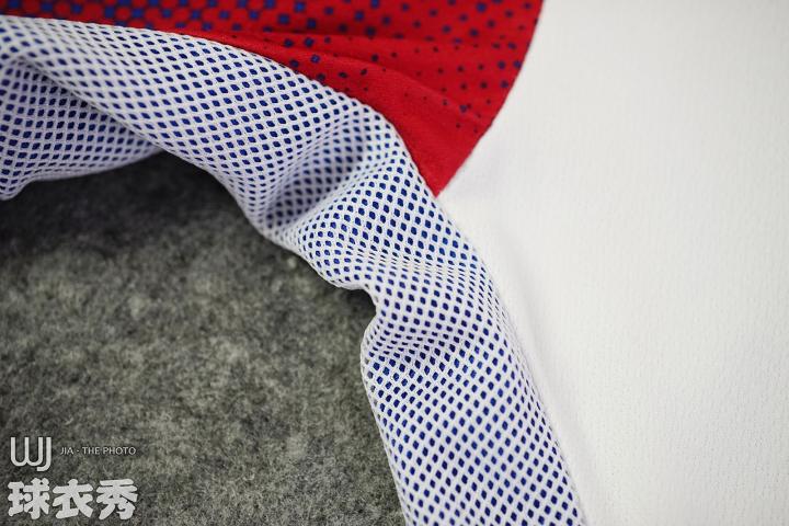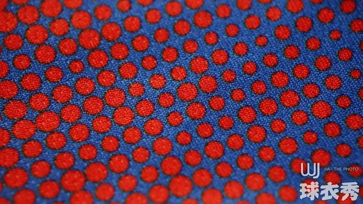 ↑球衣侧面搭配特殊的双层网状面料,透过该面料可以看见底层的蓝色设计。