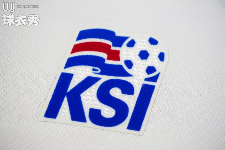 ↑球衣左胸是冰岛足协的标志,包括冰岛国旗及足协的简称KSI。