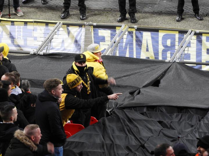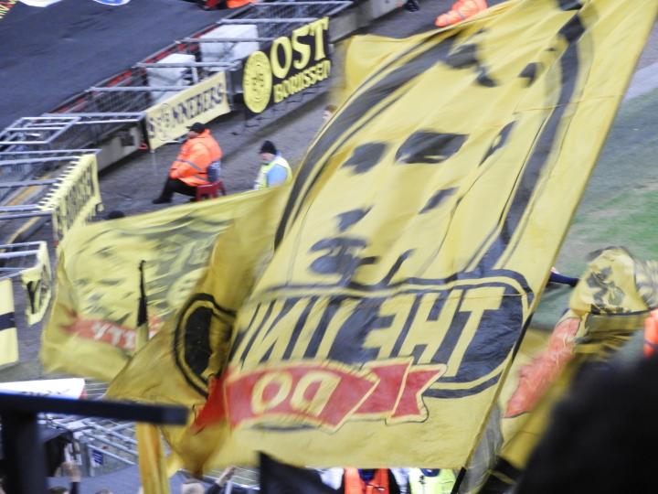 多特的球迷们把魔鬼主场的阵势仿佛复制过来了,看了这么多次现场,还从来没有一个客队支持者们能跟他们一样的活跃与兴奋。从开始就全体边唱歌边蹦蹦跳跳。