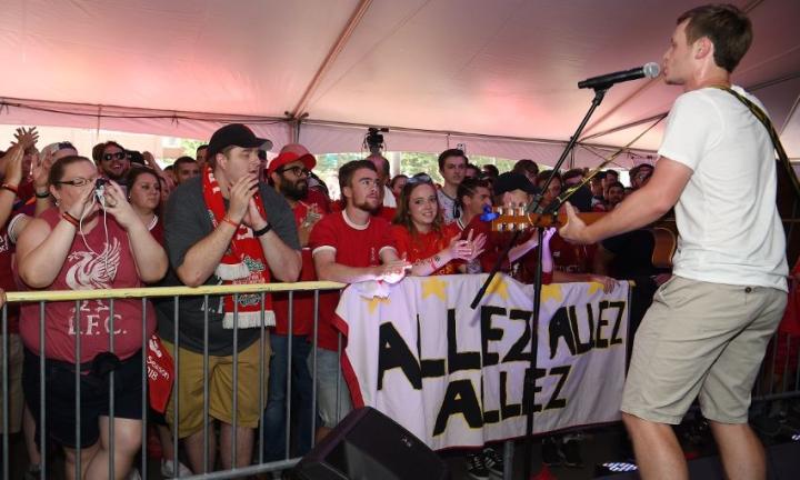 “很多人没有机会每周都到现场看比赛。”基利安说,“他们当中有人住在国外,有人也许无法承担购买比赛门票的经济成本,所以他们愿意看到像我或杰米(韦伯斯特)表演音乐,感受与其他球迷一起唱歌的氛围……某些时候,有人站出来请你唱歌,你也许并不认识他们,但你知道大家的想法都一样。”