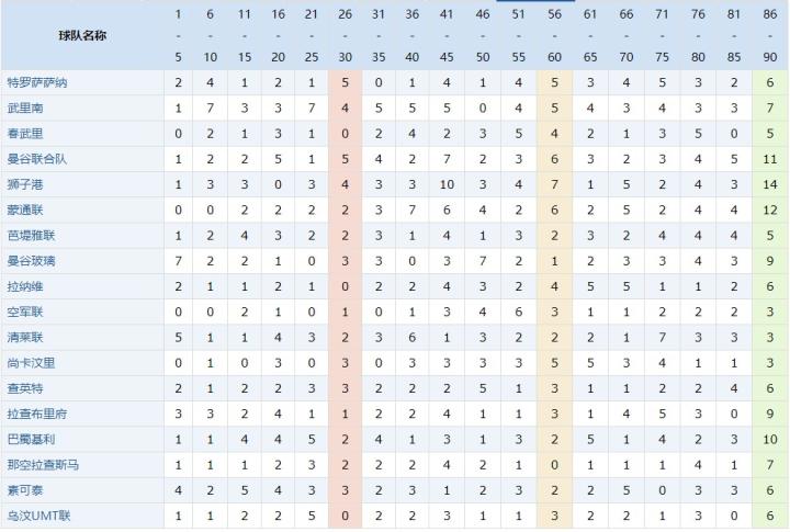 进球时间段数据