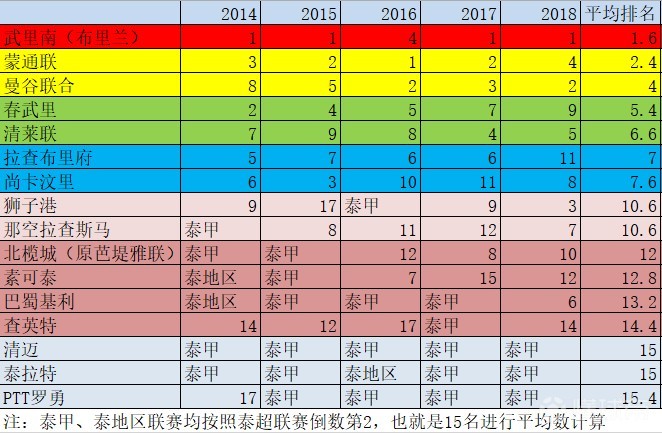 过去5年的泰超联赛里,只有7支球队未曾降级或身处低级别联赛过。这7支球队,正是泰超近5年平均成绩最好的7支球队。
