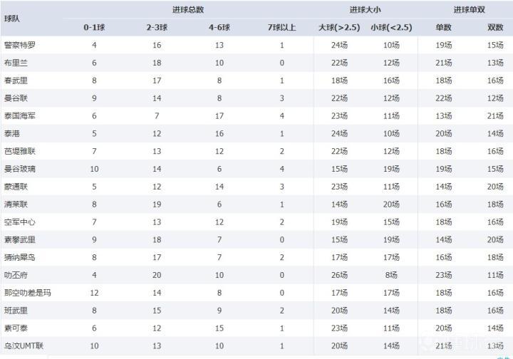 上图是泰超联赛的进球数据以及随机截取的5轮联赛的大小球盘口数据。从进球数据图我们可以看到,泰超联赛中大2.5球打出场次总和明显高于小2.5场次总和。而大小球盘口数据显示,泰超联赛的大小球盘口在开盘时,多为3球、3.5球,很少低于2.5球。像我们所熟知的英超、德甲联赛,大小球盘口体系多围绕2.5球进行开盘,进球数不多也不少,比较中庸。而泰超联赛的大小球盘的开盘多高于2.5,可以达到3球、3.5球的水平,这样的水平可以同传统大球联赛澳超、美职媲美,远高于普遍水平。所以综合来看,泰超是一个大球联赛。