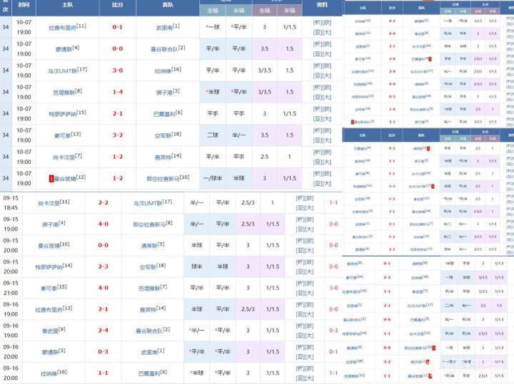 大小球盘口数据