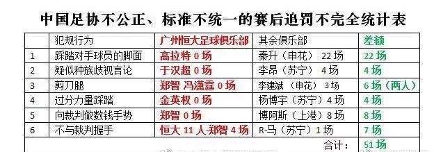 2017"七冠"赛季恒大在国内赛场“受照顾”之列据