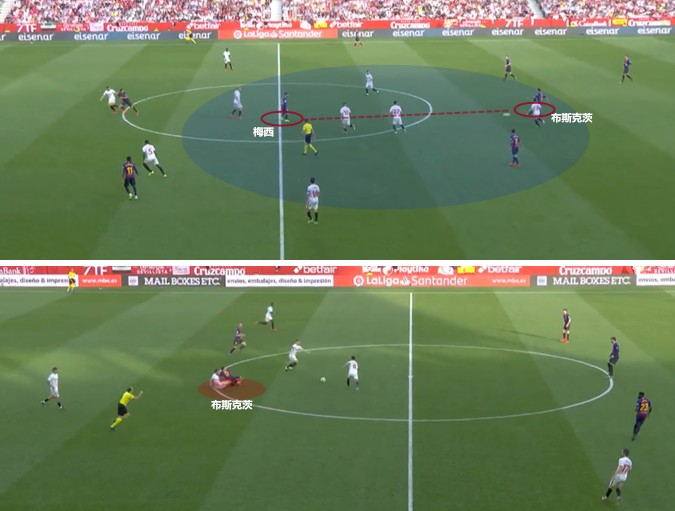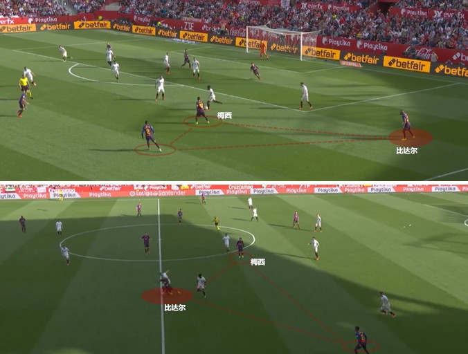 在国王杯1/4决赛次回合对阵塞维利亚的比赛中,梅西浪费了近10次射门机会后才取得进球,阿根廷人希望尽快帮助球队逆转,在射门操作时略显着急,前赴后继倒地封堵的塞维利亚后卫也给他制造了很大的麻烦。此番再战,塞维利亚的压迫意识和向前欲望很强,后场的防守密度稀松了不少,在高低位防守切换时的回防到位率也不够到位,经验丰富的梅西自然不会放过这一漏洞。
