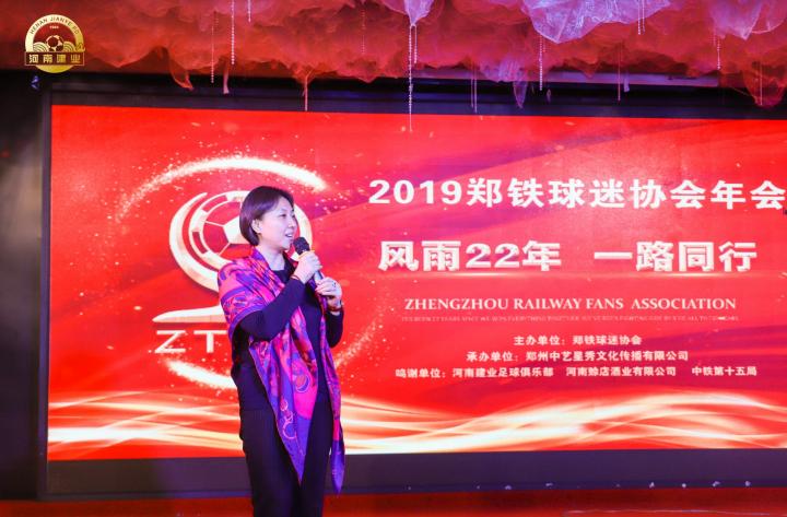 2月24日,河南建业郑州市铁路局球迷协会(以下简称郑铁球迷协会)举行年会,河南省足球事业发展基金会理事长杨楠女士,河南省足球协会副秘书长杨炎柱先生,河南建业足球俱乐部球迷会员部经理康杰先生,以及河南知名媒体代表与郑铁二百余名球迷一起讲建业足球精神,聊球迷情怀。