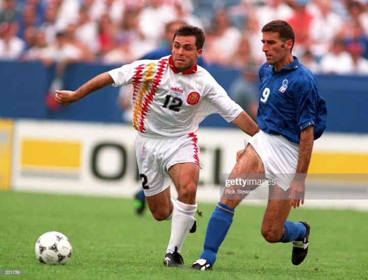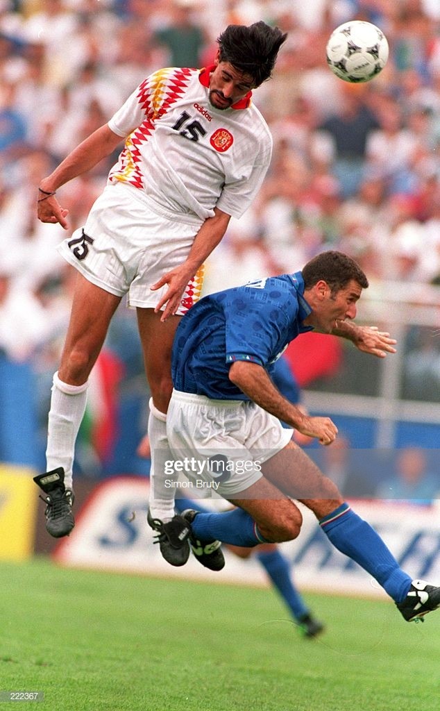 塔索蒂在1994年世界杯,穿的居然是9号球衣,作为一名右后卫,却用了前锋的号码,其实这件意大利9号球衣,之前一直是塔索蒂的好哥们,米兰队友安切洛蒂的,所以在安切洛蒂退出国家队后,塔索蒂就选了9号球衣参加世界杯,因为他也知道,这肯定是他最后一次参加世界杯,干脆出出风头。结果没想到风头出的有点大,在和西班牙队的淘汰赛中,塔索蒂和路易斯恩里克在一次对抗中,使出大力金刚肘绝技,神不知鬼不觉的情况下,恩里克鼻梁骨被砸骨折,顿时血流满面。塔索蒂沉着冷静若无其事,还逃过了裁判的法眼。但赛后,塔索蒂被国际足联追究处罚停赛7场国际比赛,也让他的国家队生涯戛然而止,他的意大利国家队出场纪录停留在可怜的8场。1994年世界杯,塔索蒂使用的战靴是valsport Goledor足球鞋,一款传统的黑白色足球鞋,可见在各方面他和科斯塔库塔都非常相似,连球鞋都是一个品牌。