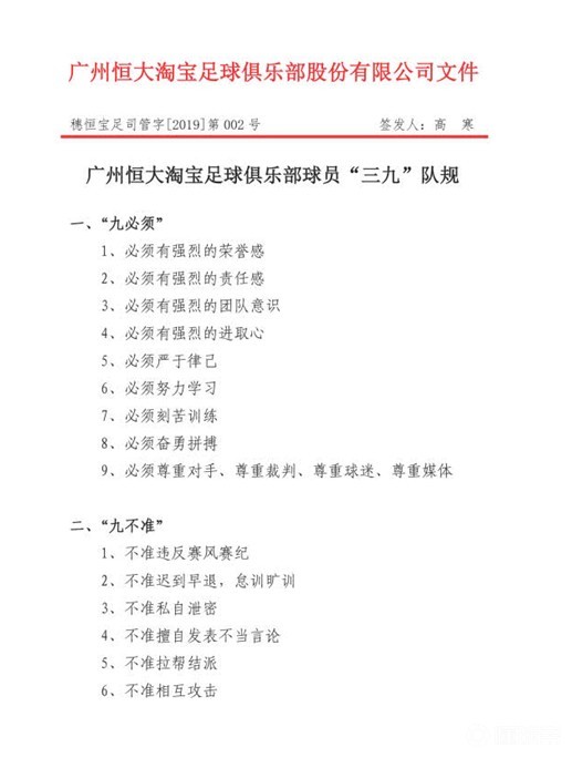 (图)广州恒大“三九队规”