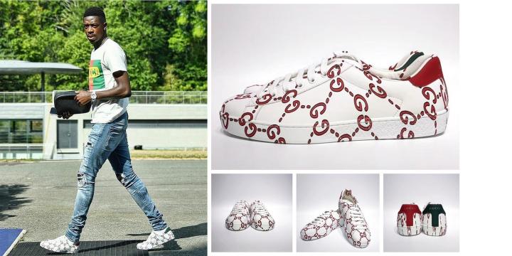 登贝莱和姆巴佩一样,腿是又细又长,这样的腿配一条紧身牛仔裤和一双低帮滑板鞋简直是绝配,而这双Gucci的复古真皮运动鞋也不像这套的上衣一样常见,价格也是很高,网络售价在7000RMB左右。