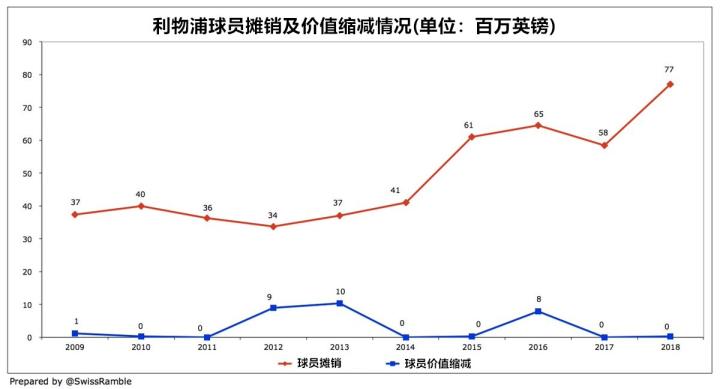 尽管利物浦在球员摊销这一项有所增长,但他们目前仅排在英超各俱乐部的第5位。相比曼联的1.38亿英镑、曼城的1.34亿英镑以及切尔西的1.24亿英镑,利物浦7700万英镑的摊销规模显得小了很多。不过在去年夏天转会市场上的一系列操作后,利物浦2018-19赛季的球员摊销还将会继续提升。