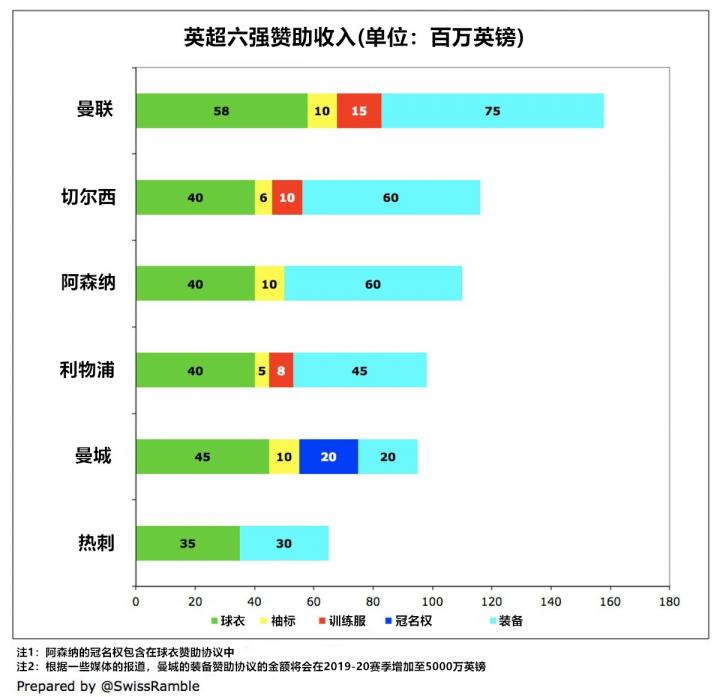 利物浦1.54亿英镑的商业运营收入排在英超俱乐部的第4位,这个数字与切尔西的1.65亿英镑十分接近,但距离曼联的2.76亿英镑及曼城的2.32亿英镑还有很大的差距。与2016年相比,他们在这一项的增幅达1/3(3900万英镑),但这个数字仍不及曼城的5400万英镑、切尔西的4900万英镑以及热刺的4500万英镑。