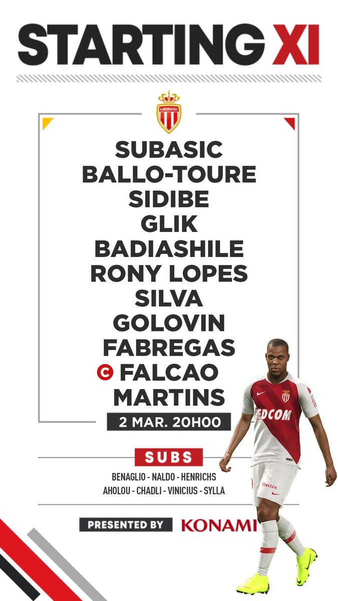 摩纳哥首发名单:苏巴西奇/福登-图雷、B.贝迪亚沙尔、格利克、西迪贝/阿德里安-席尔瓦、法布雷加斯/罗尼-洛佩斯、戈洛温、热尔松-马丁斯/法尔考