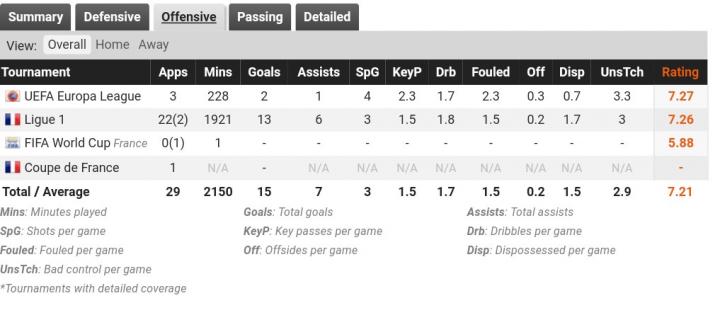 在经历了半年的调整期之后,托万开始在加西亚手下展现水平,2016/17赛季打进15个联赛进球,11次助攻,更是上演了职业生涯首个帽子戏法,也顺利进入了德尚的国家队,上赛季他再接再厉,联赛22球12助攻,各项赛事26球18助攻,欧联杯亚军,法甲银靴的成绩,让他随法国国家队获得了俄罗斯世界杯的冠军,成为了真正的明星球员和马赛的王子,本赛季他再接再厉,法甲已经打进13球助攻7次。