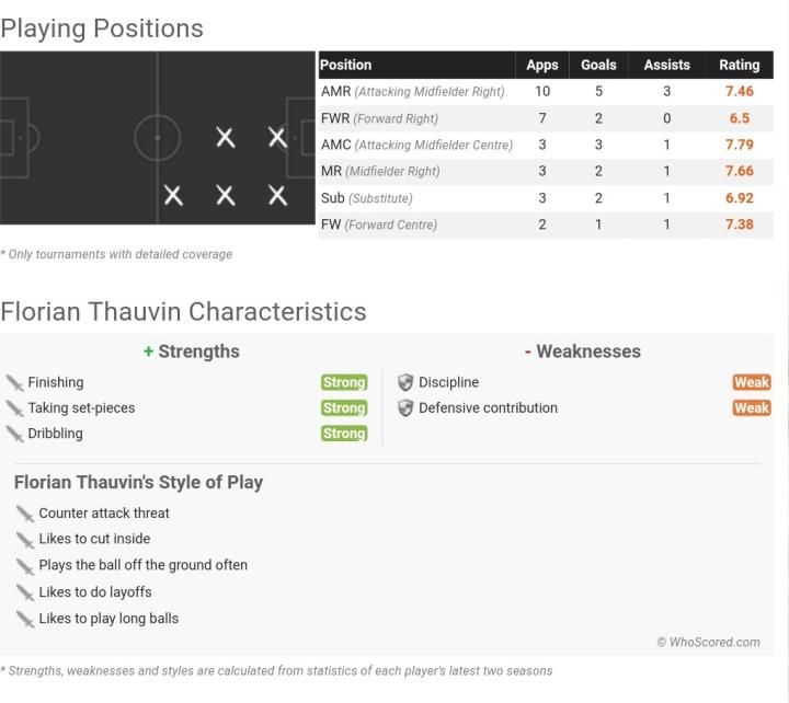 2.技术特点:踢边路的前锋,神似格列兹曼
