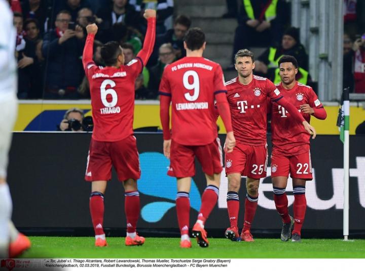 两个不断内收的边前卫也充分发挥了自己的特点。格纳布里不仅再次收获了进球,也有反击单刀被索默神扑的表演。穆勒再次利用游走的跑位和出色的串联能力解开了全队配合的方程式,和蒂亚戈、J罗、莱万携手各自送出3次关键传球。